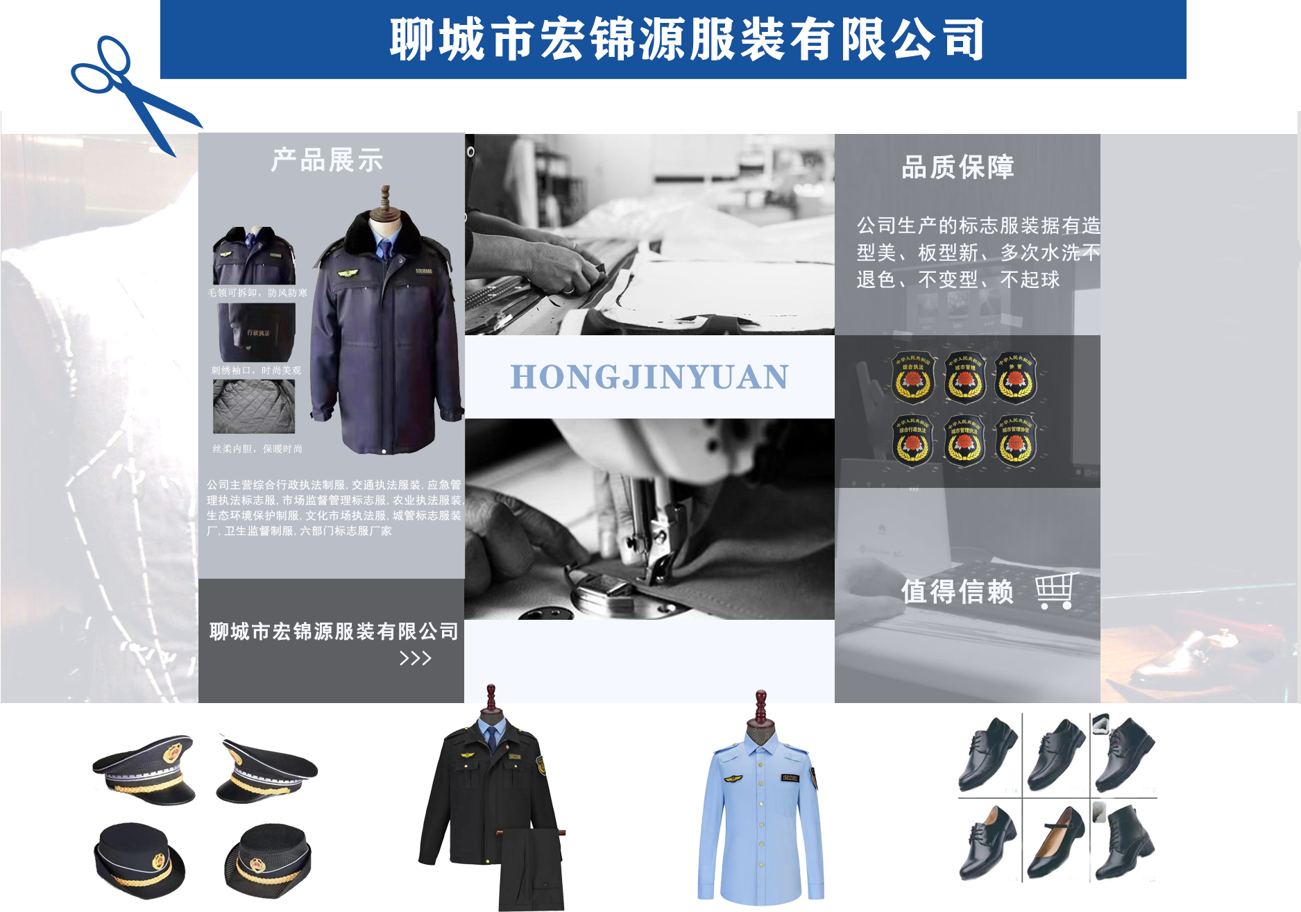 聊城市宏錦源服裝有限公司位于江北水城—山東聊城,地理位置優(yōu)越,交通便利。公司主營綜合行政執(zhí)法制服,交通執(zhí)法服裝,應(yīng)急管理執(zhí)法標(biāo)志服,市場(chǎng)監(jiān)督管理標(biāo)志服,農(nóng)業(yè)執(zhí)法服裝,生態(tài)環(huán)境保護(hù)制服,文化市場(chǎng)執(zhí)法服,城管標(biāo)志服裝廠,衛(wèi)生監(jiān)督制服,六部門標(biāo)志服廠家等,值得信賴! 公司生產(chǎn)的標(biāo)志服裝據(jù)有造型美、板型新、多次水洗不退色、不變型、不起泡?! 罢J(rèn)真辦事,踏實(shí)做人”是宏錦源的企業(yè)精神,我們的宗旨是:“用服務(wù)與真誠來換取你的信任與支持,互惠互利,共創(chuàng)雙贏!”我公司愿與國內(nèi)外各界同仁志士竭誠合作,共創(chuàng)未來企業(yè)目標(biāo):在已選定的服飾領(lǐng)域中,成為行業(yè)的卓越者?! 〗?jīng)營理念:追求產(chǎn)品卓越,為用戶提供完美、高效的服務(wù)。...